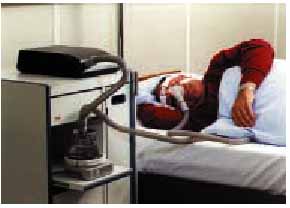 Le standard du traitement du SAOS est le traitement nocturne continu sous pression positive (nCPAP = nasal Continuous Positive Airway Pressure). L'appareil à CPAP donne une rigidité pneumatique des voies respiratoires hautes, qui empêche les pauses respiratoires et permet de restaurer une activité respiratoire régulière normale. La pression optimale peut être déterminée lors d'une polysomnographie ou d'une polygraphie. Ce qui implique qu'une personne doit surveiller le patient pendant toute la nuit. Le dosage automatique de la pression par un appareil auto-CPAP s'est imposé pratiquement partout ces derniers temps. La pression nécessaire est automatiquement déterminée par l'appareil à CPAP, par un algorithme enregistrant en temps utile les variations du débit respiratoire et adaptant la pression de l'air en conséquence [10]. Physio pathologiquement, l'effet de l'appareil à CPAP est facile à comprendre, et le résultat se fait sentir lors de la première ou de la deuxième nuit déjà. Le patient réalise souvent dès la première nuit qu'il a bien dormi, ce qui n'a pas été le cas depuis des années, et il se réveille le lendemain matin bien reposé. Si le diagnostic est soigneusement et bien posé, il est fréquent que le patient enregistre un succès après très peu de temps, ce qui améliore sa compliance [11] .